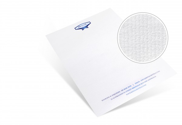Inkable’s 100gsm Laid is an elegant, ribbed premium business stationery stock that emulates the look and feel of traditional handcrafted paper. Subtle raised patterns are formed by vertical and horizontal chain lines that deliver textured fine business stationery paper. Laid has a subtle embossed latticework pattern, and very Light Grey undertones.